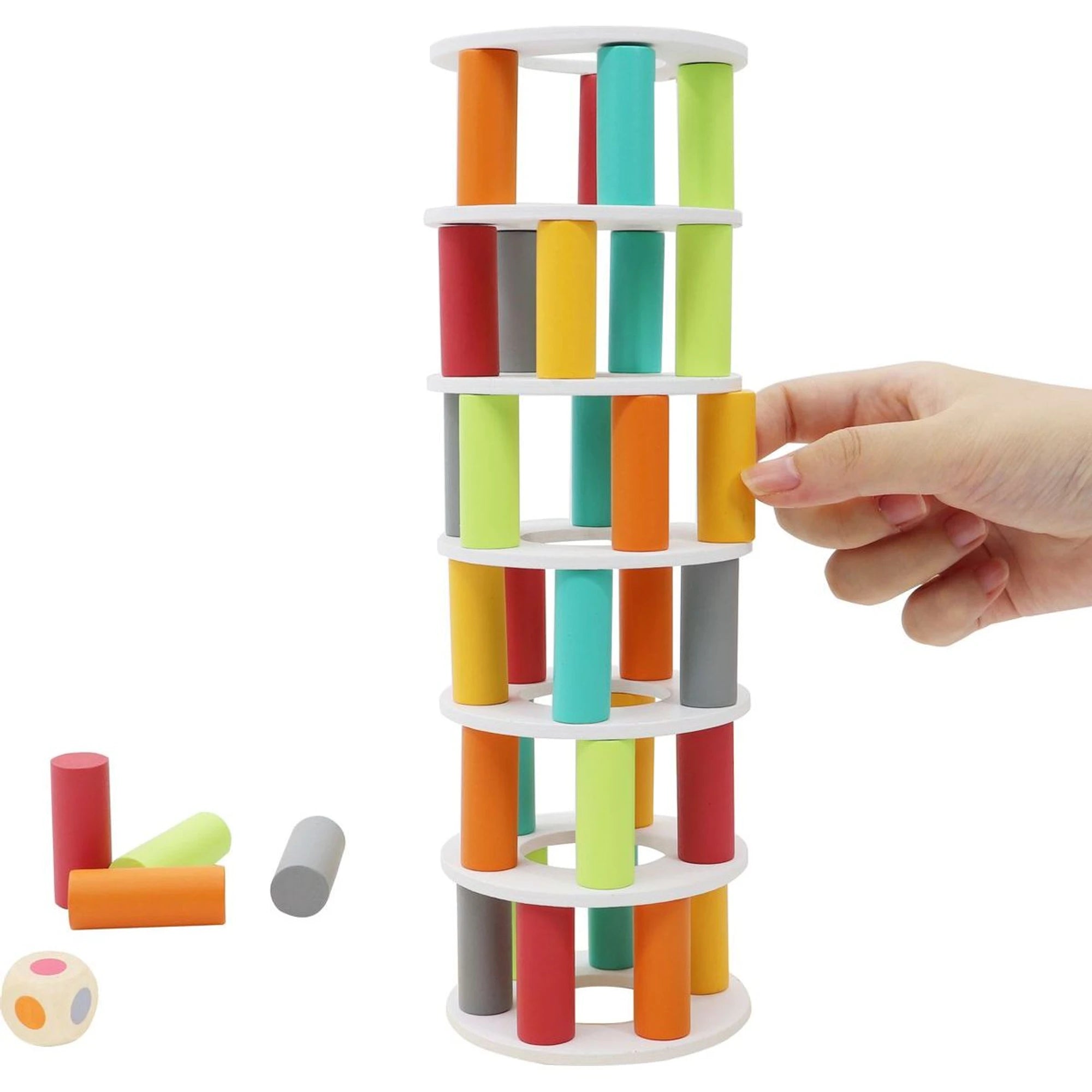 Balancierspiel als Turm, den Kinder aus Ringen und Zylindern zusammenbauen können. Danach geht’s ans Ziehen: Die Zylinder werden nach und... Mehr lesen