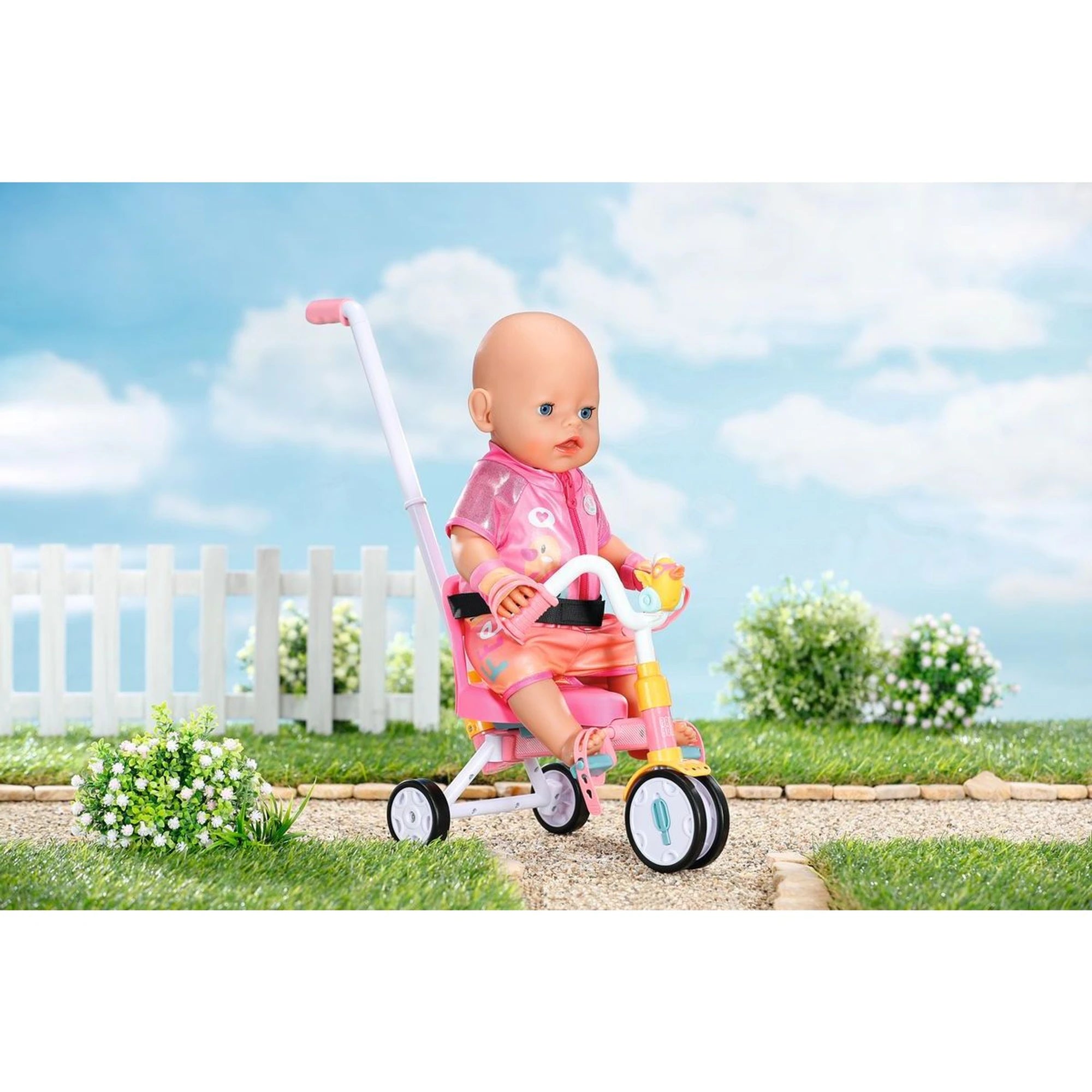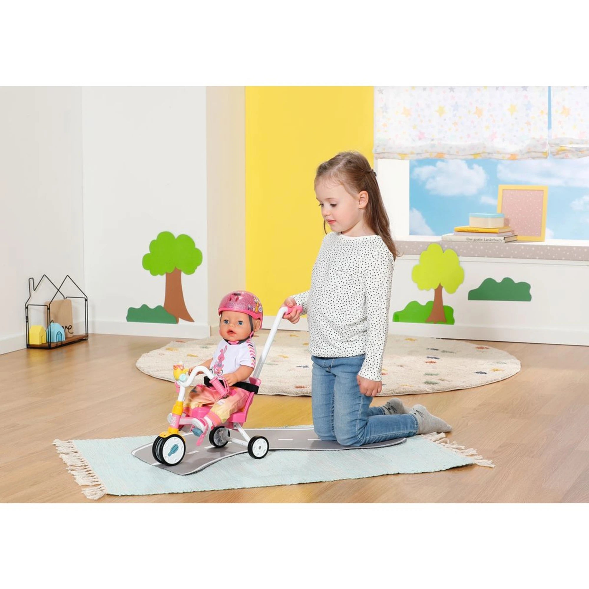 Das rosa Dreirad ist für Baby Born Puppen gedacht.