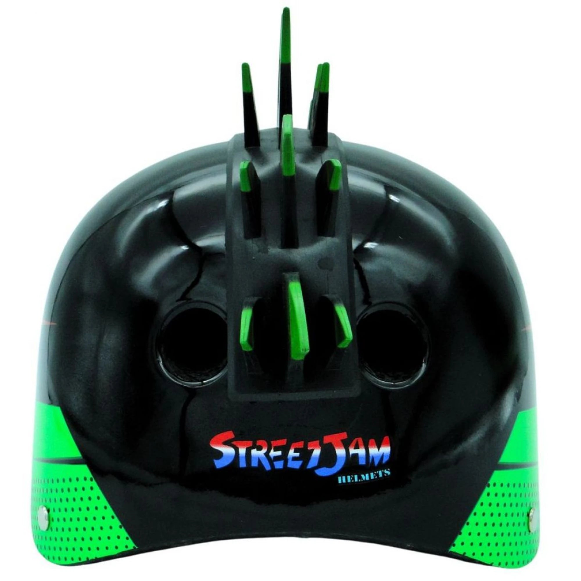 Bequemer Helm für kleine Sporthelden. Diesmal in Schwarz mit grün-rotem Muster und eindrucksvollen Details.