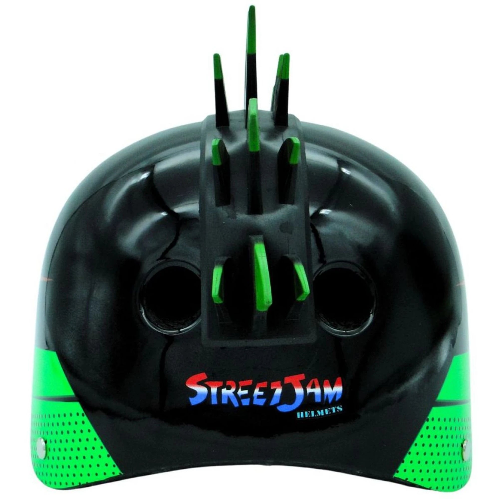 Ein bequemer Helm für kleine Sportlerinnen und Sportler. Dieses Mal in Schwarz mit grün-rotem Muster und eindrucksvollen Details.